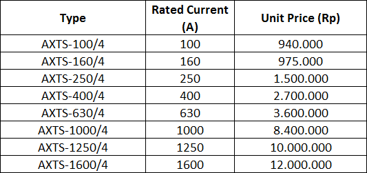 • Rated current (A) : 100, 160, 250, 400, 630, 1000, 1250, 1600